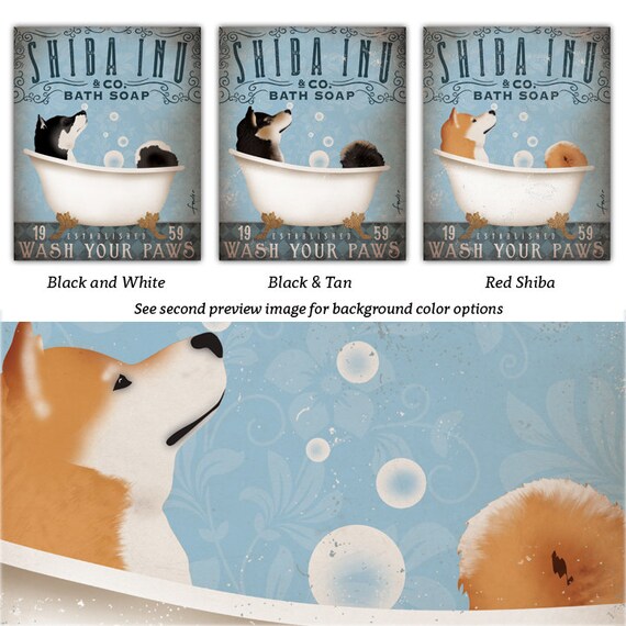 Shiba Inu Bath Soap Company Dog Artwork On Canvas By Stephen Etsy Uk