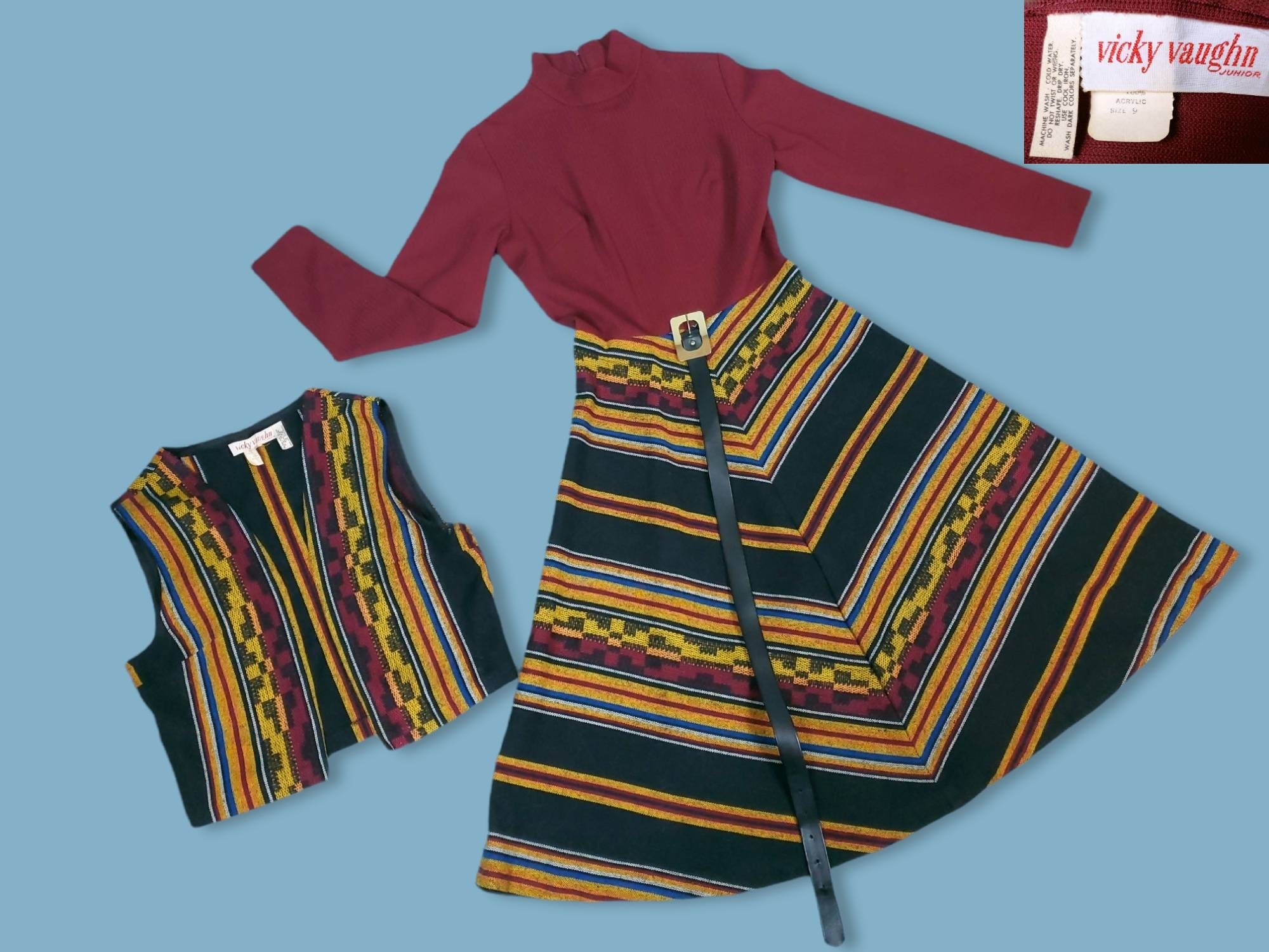 1970s 2 Piece Dress Set Colorful Woven Serape Dress Vest Etsy Uk